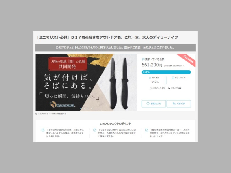 初挑戦となったMakuakeでの反響を受け、「もっと多くの方にこのナイフを知っていただきたい」という想いが強まり、再びクラウドファンディングに取り組むことを決意しました。